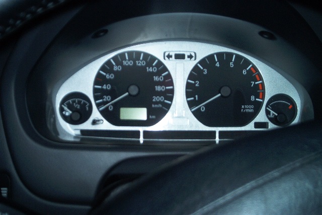 Da der Innenraum Grau in Grau war, wurde dieser mit folgenden Umbauten etwas aufgewertet. Die Tachoblende und die Mittelkonsole wurden in Silber Lackiert und